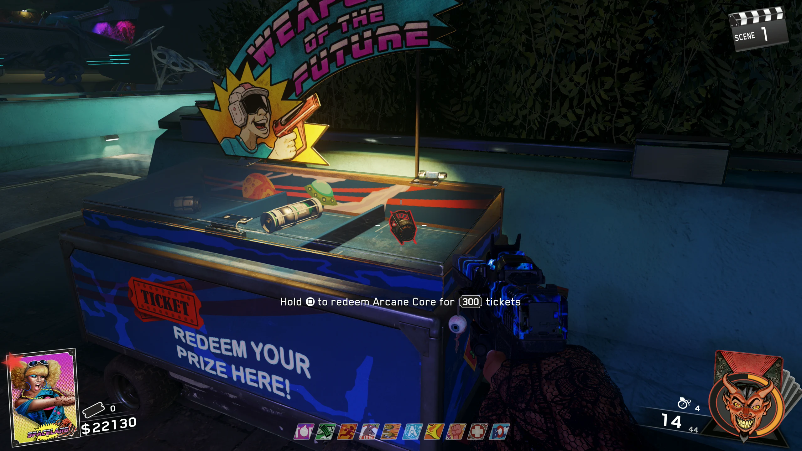 - Purchase an Arcane Core (300 Tickets) from any one of the 'Weapons on the Future Reward' Stands around the map.