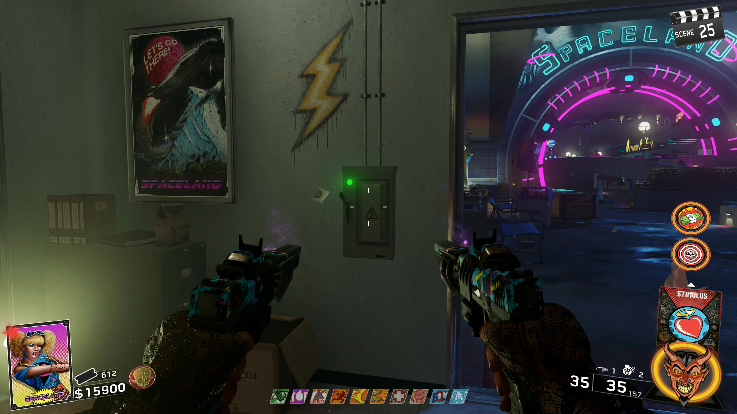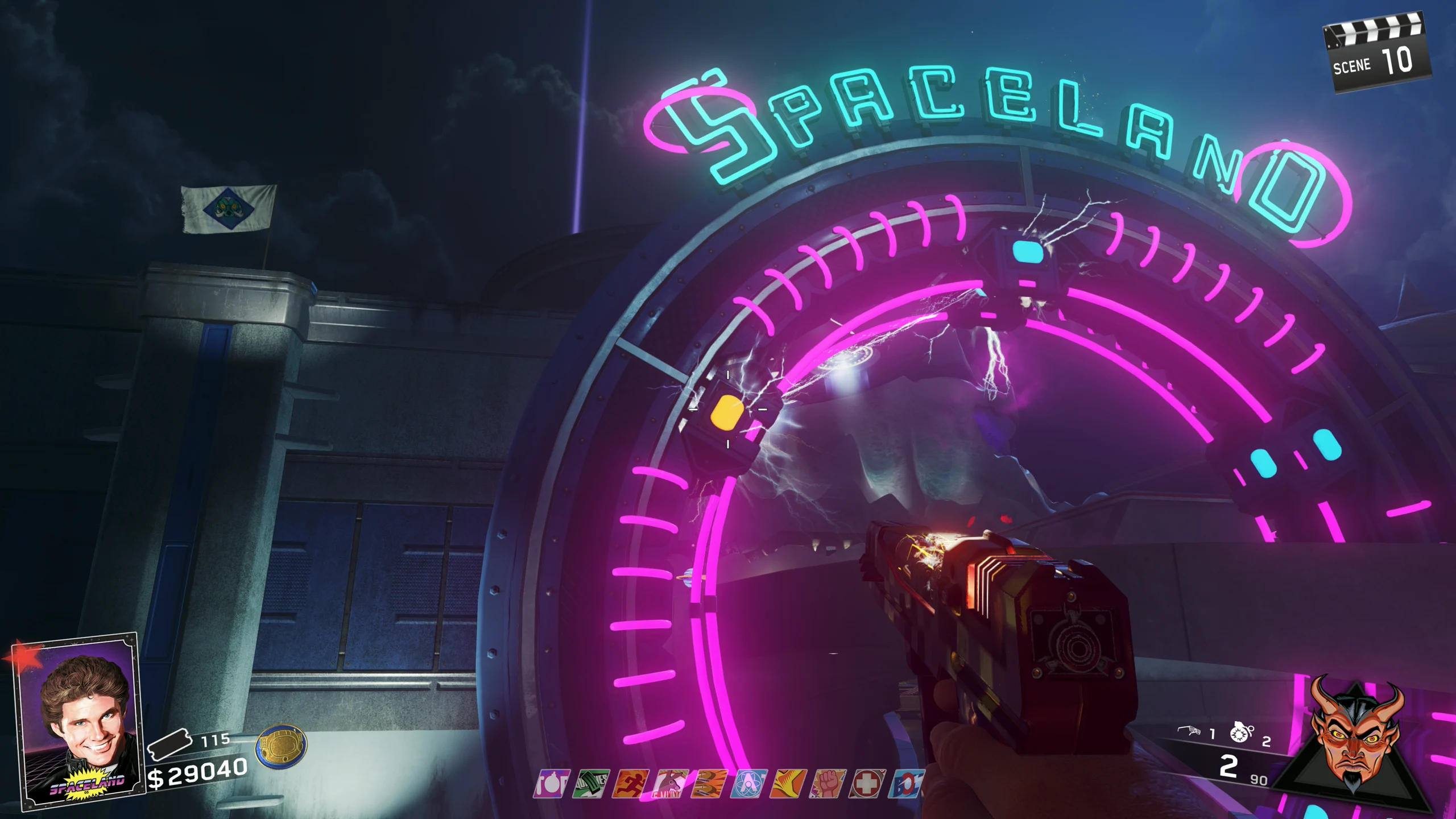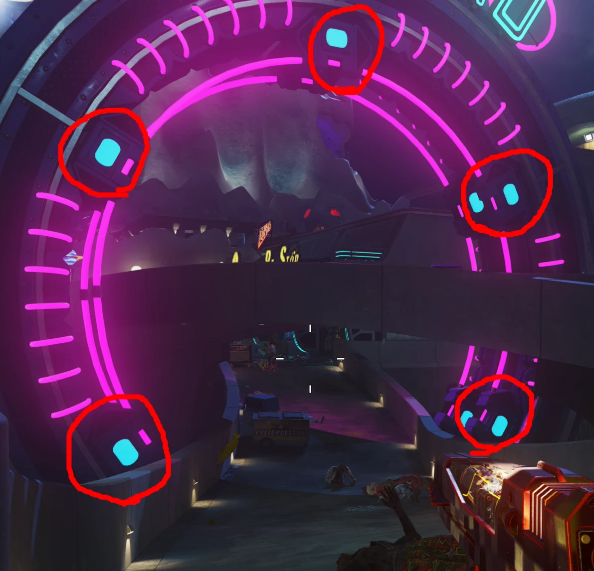 - Using an upgraded wonder weapon, shoot four of the five "power nodes" on the Spaceland Ring around the bridge from spawn. When shot, the node will turn orange and arc electricity to surrounding nodes.