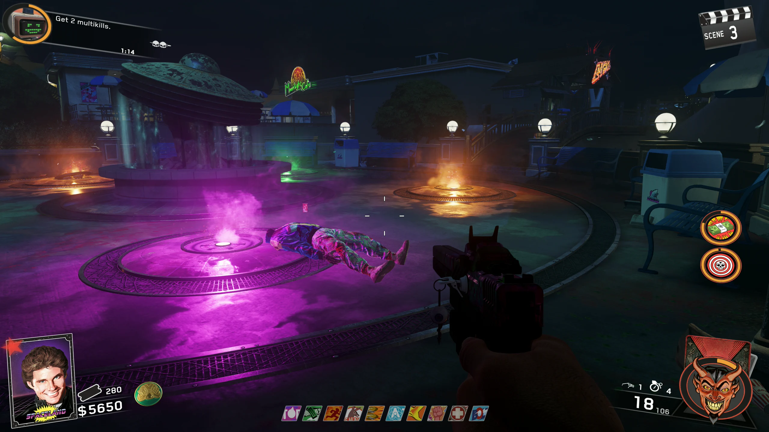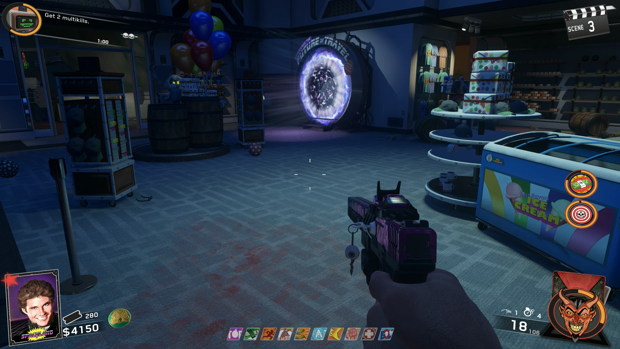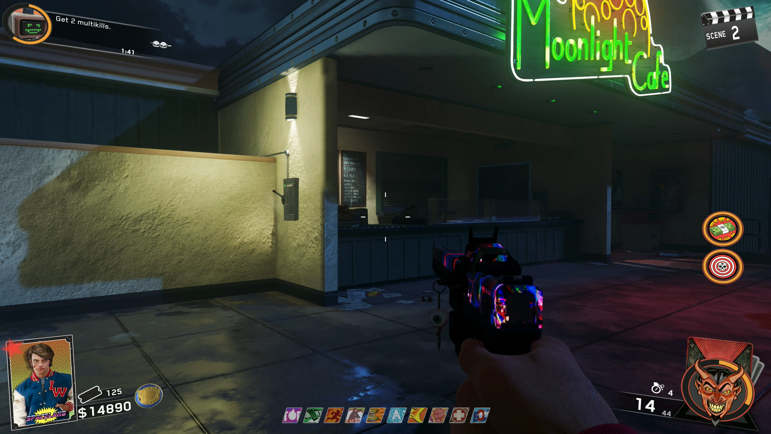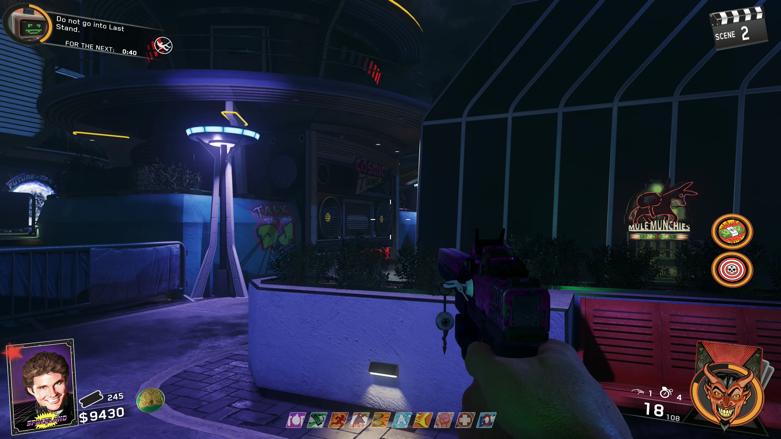 - While standing on specific coloured squares on the Disco Floor in the Astrocade, you must get a certain number of kills.