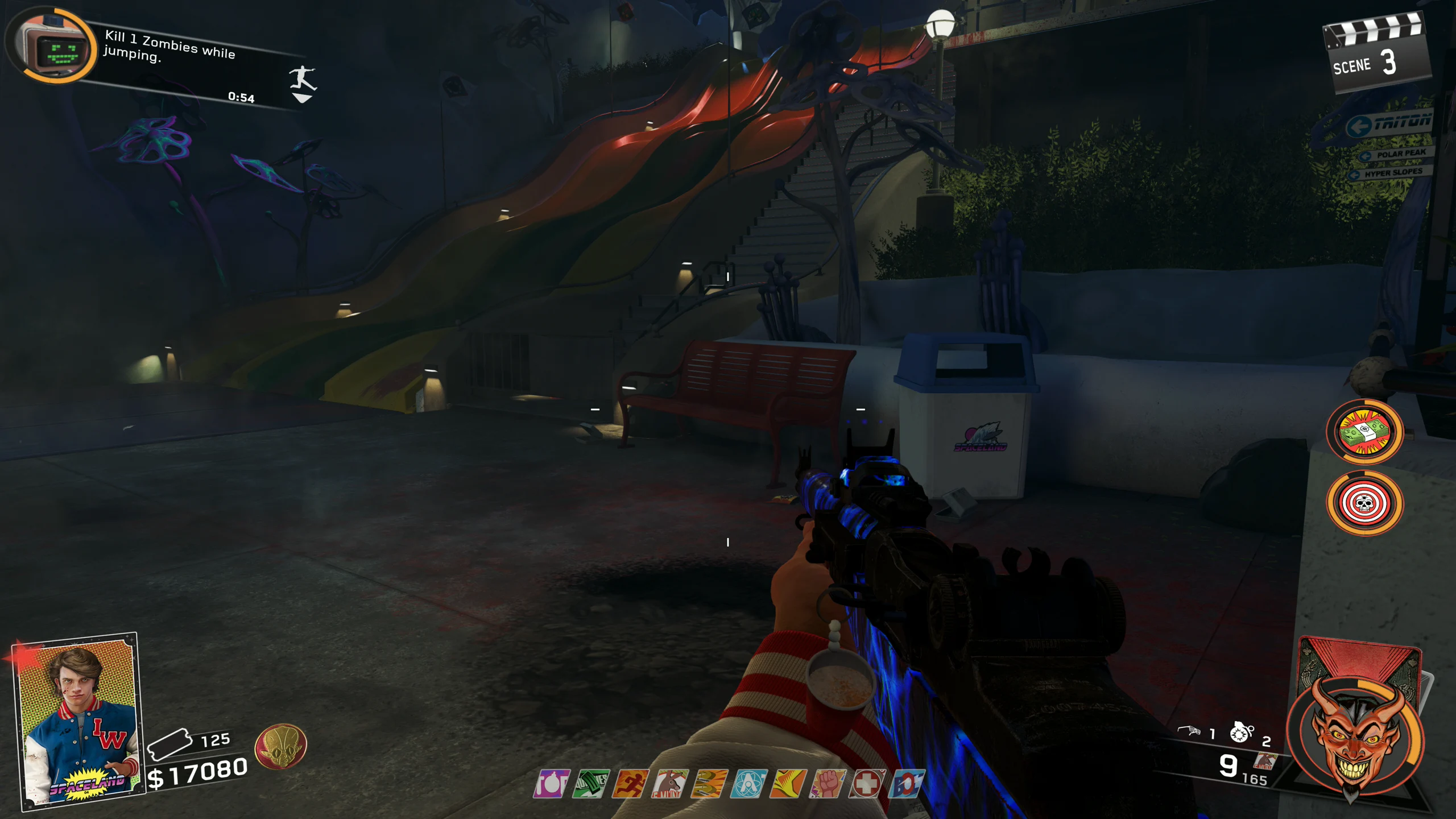 - Zombie Zoom - You must pass the skull before the grey Zombie does. Tip: Activate the Disco Ball trap to get the Zombies off of you and spam the shoot button instead of holding it down because if you mash, the gun's recoil doesn't kick in.
