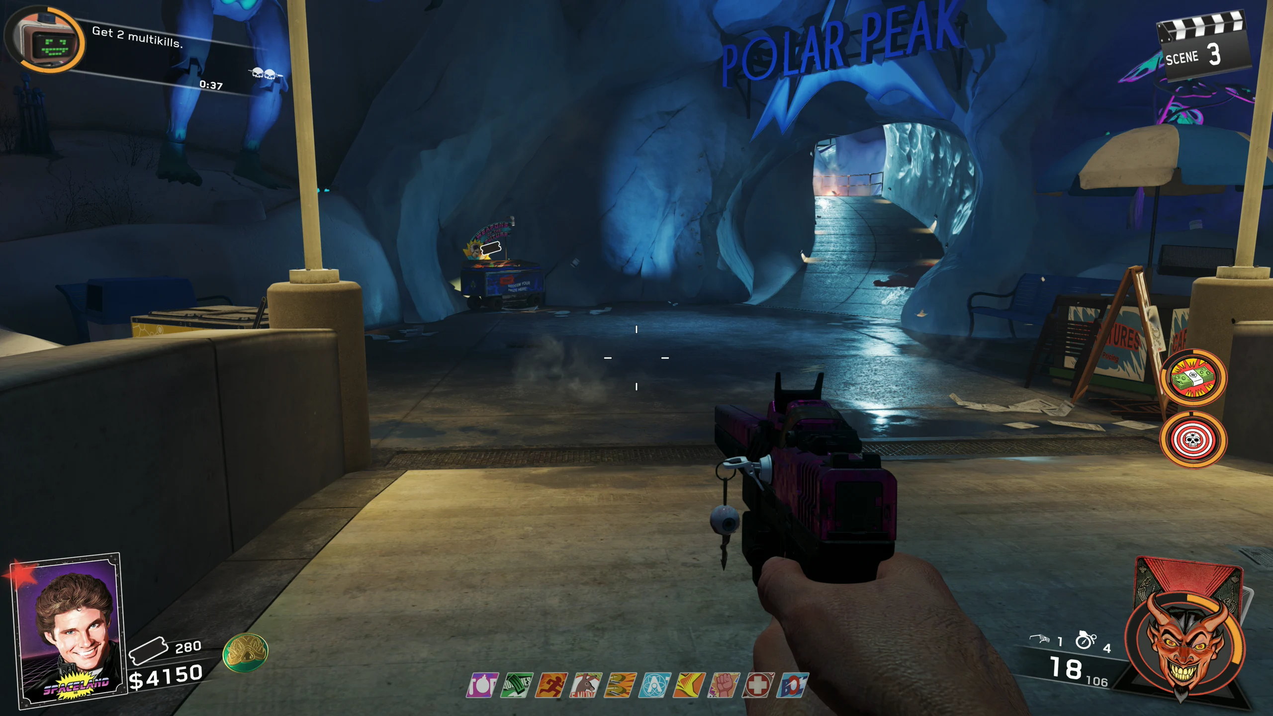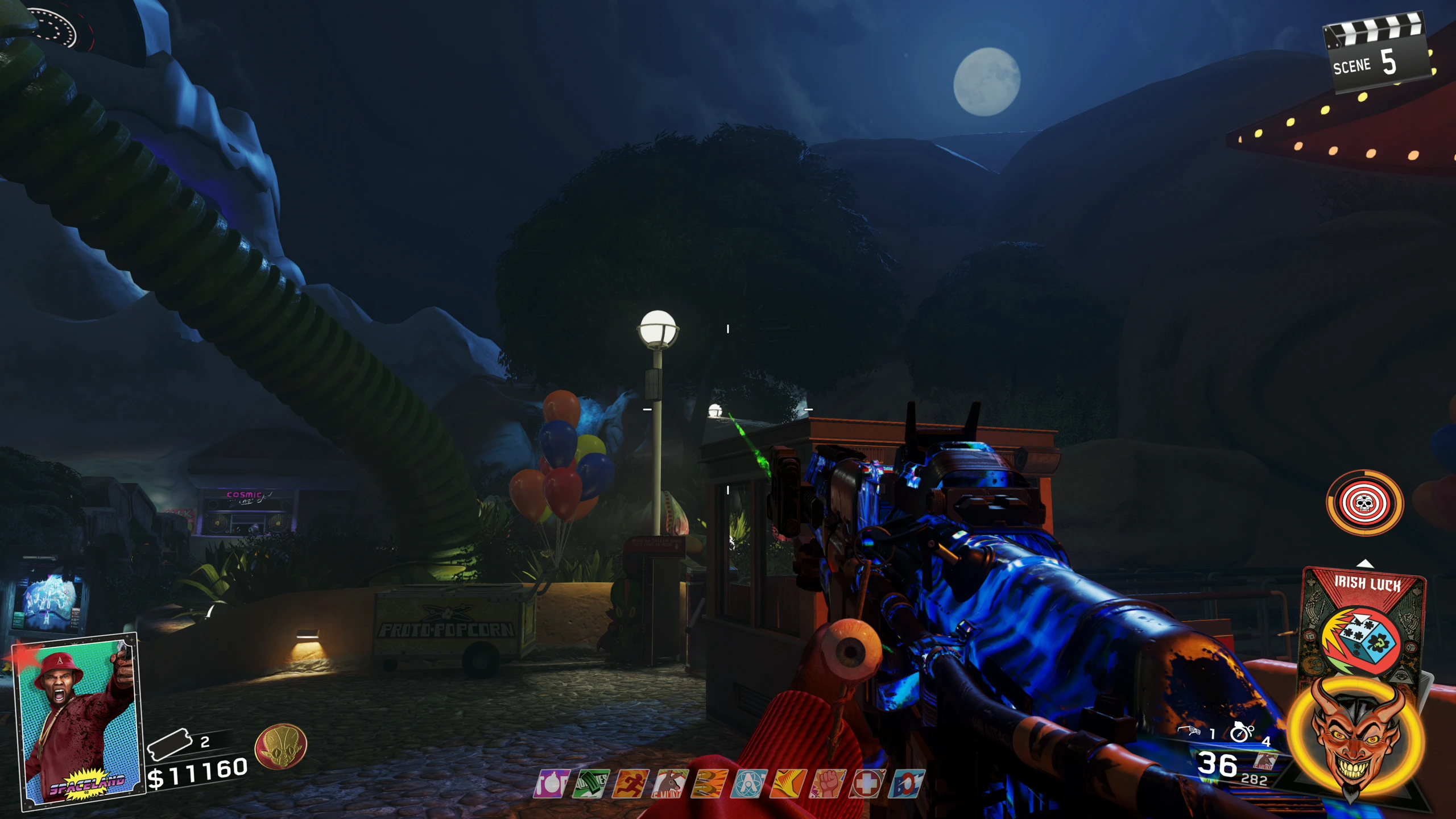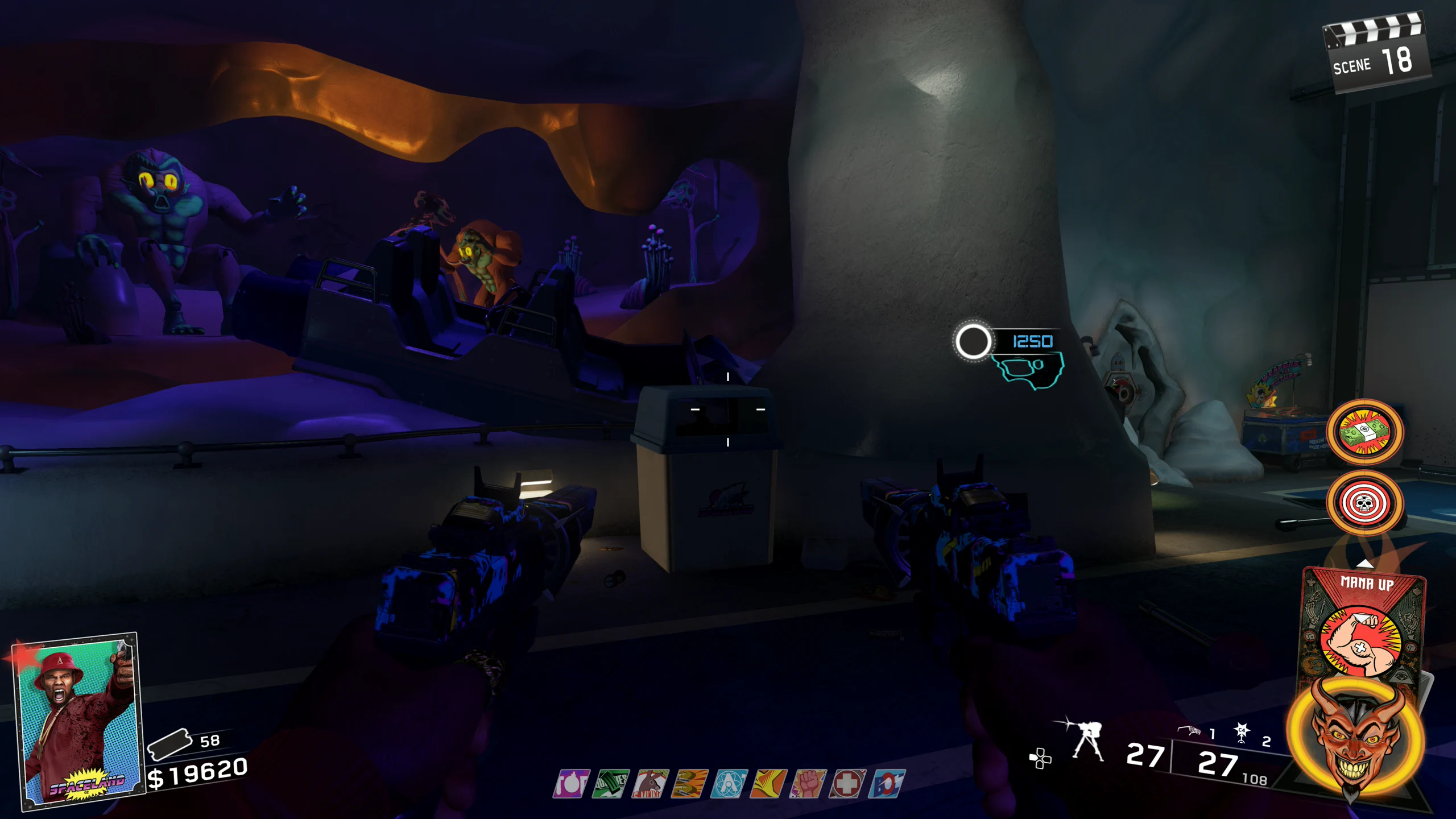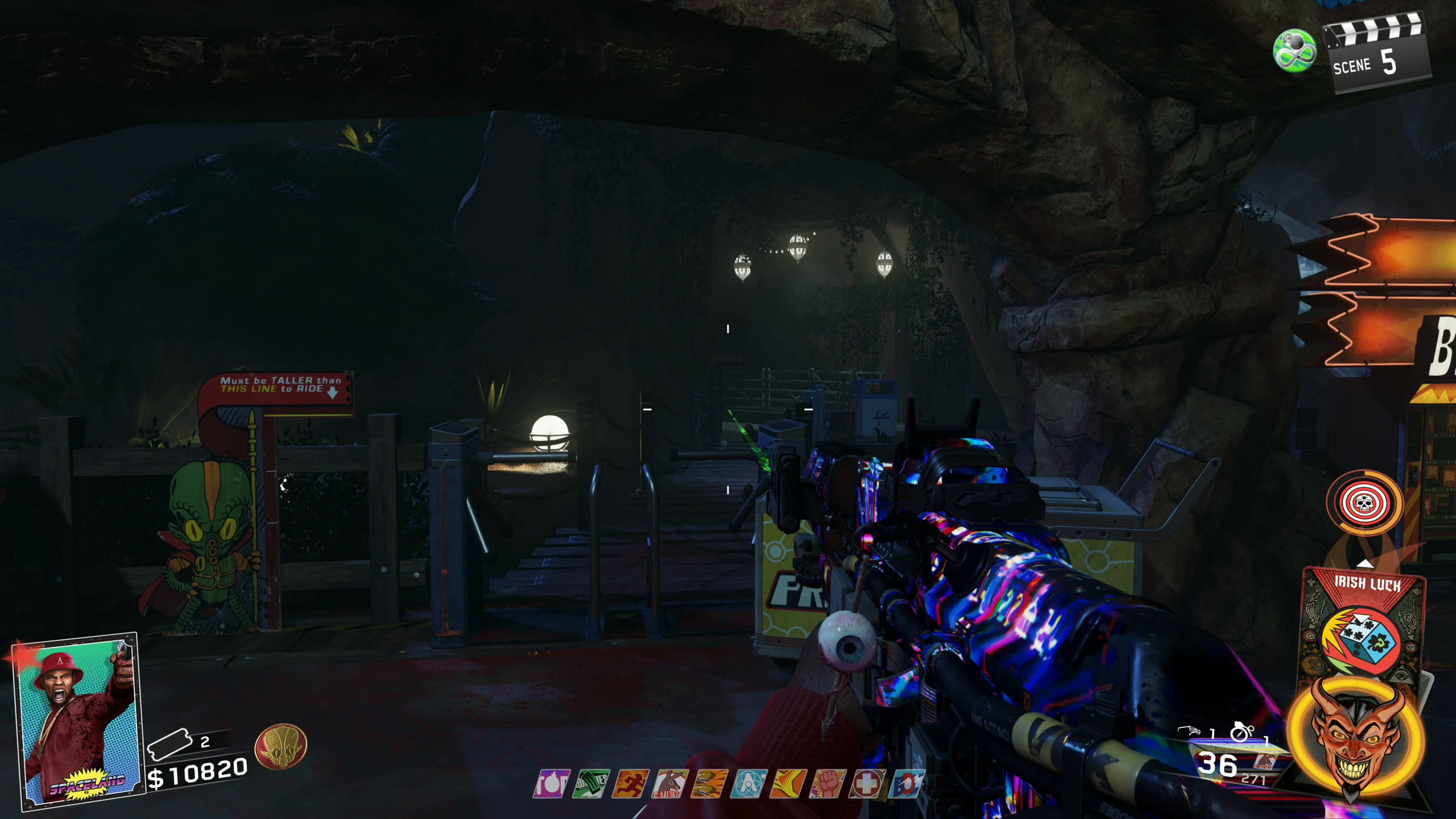 - Ride the Rollercoaster with the sunglasses on. At the end of the first quick downhill section, you will see a Yeti Animatronic breathing cold air. Shoot the White Talisman Mask between the eyes of the Yeti. If done correctly, you will unlock the new Lobby Music.