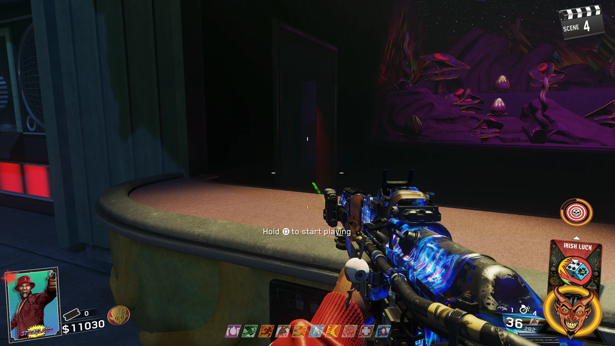 - Almost immediately after you've interacted with the speaker, Zombies will start infinitely spawning, and the UFO will flash all four colours with a sound going with each; note down the order of the colours. Once the UFO is finished, the UFO and the speakers will glow white, waiting for your input. Interact with the speakers in the same order as the UFO, for example, if the UFO flashes Yellow, Red, Blue, and Green, repeat that back to the UFO.