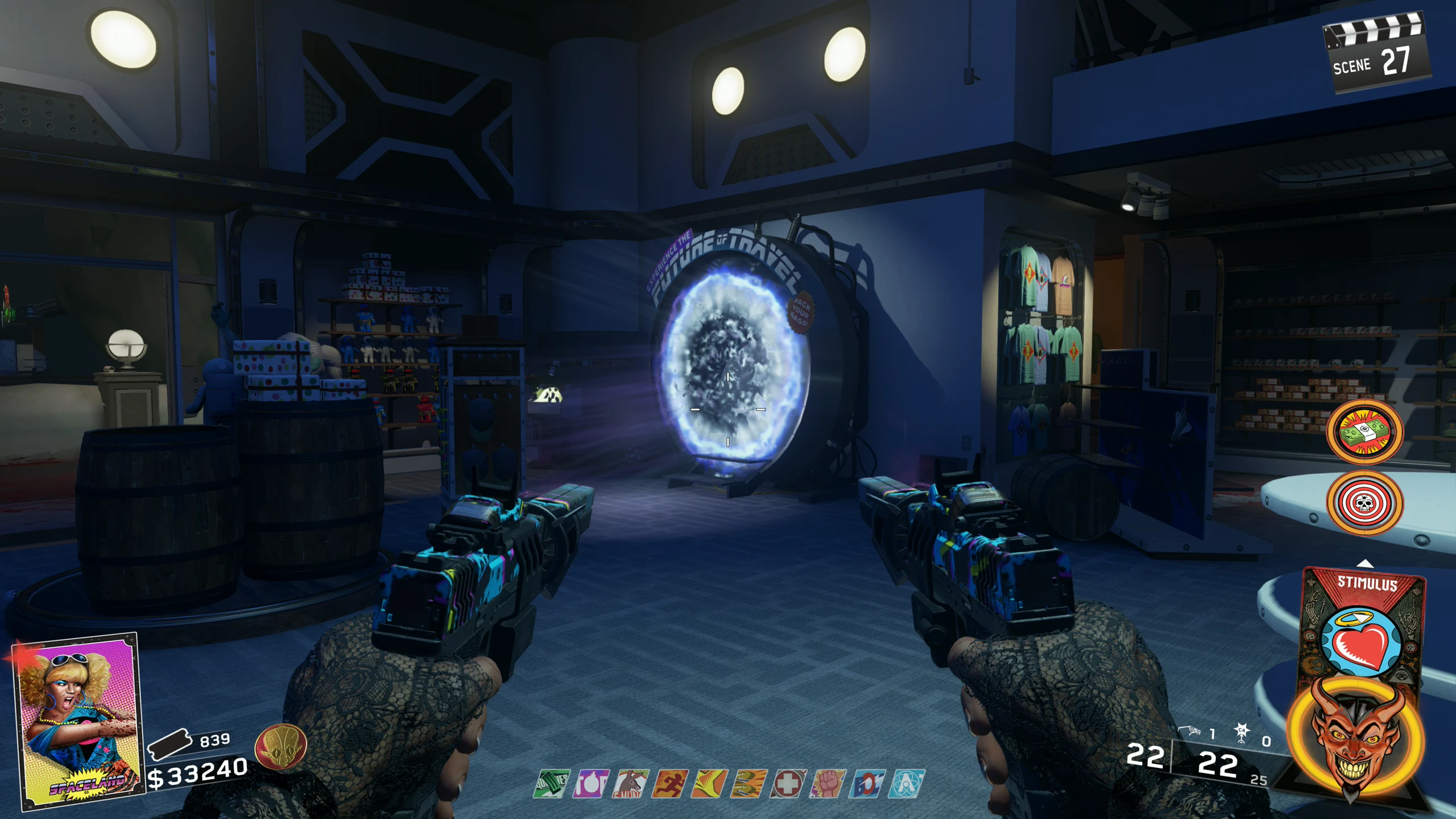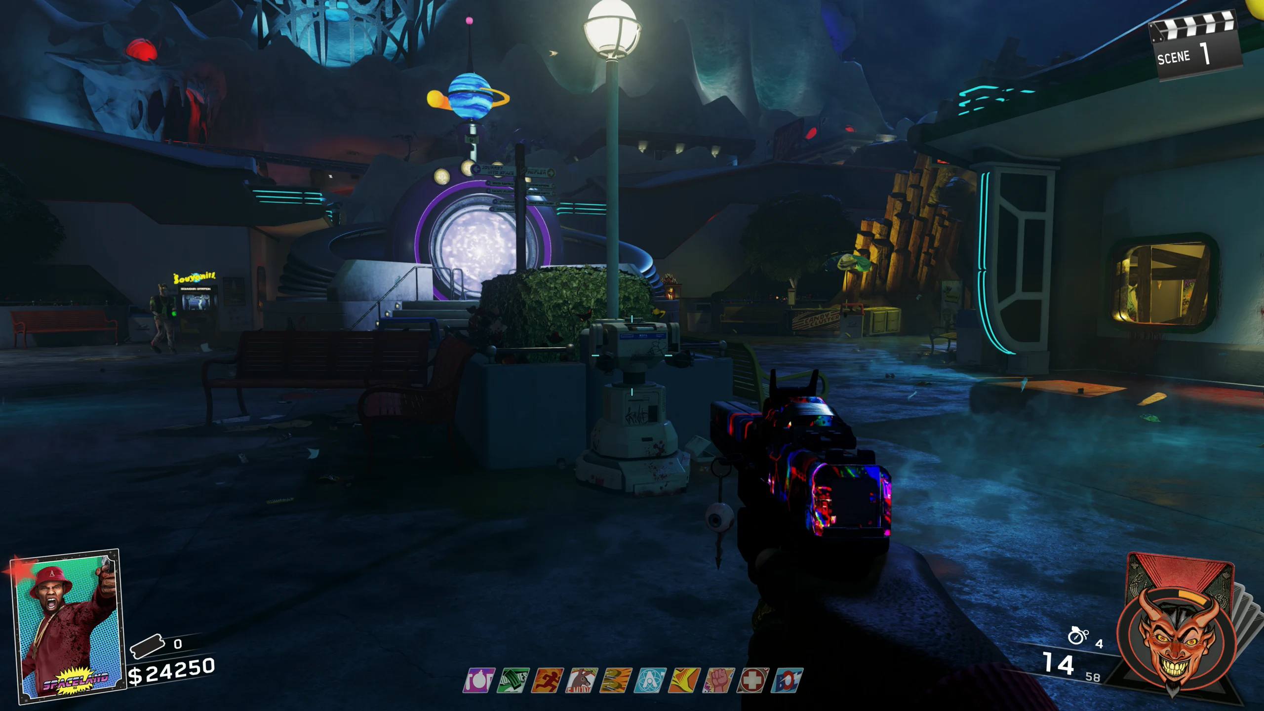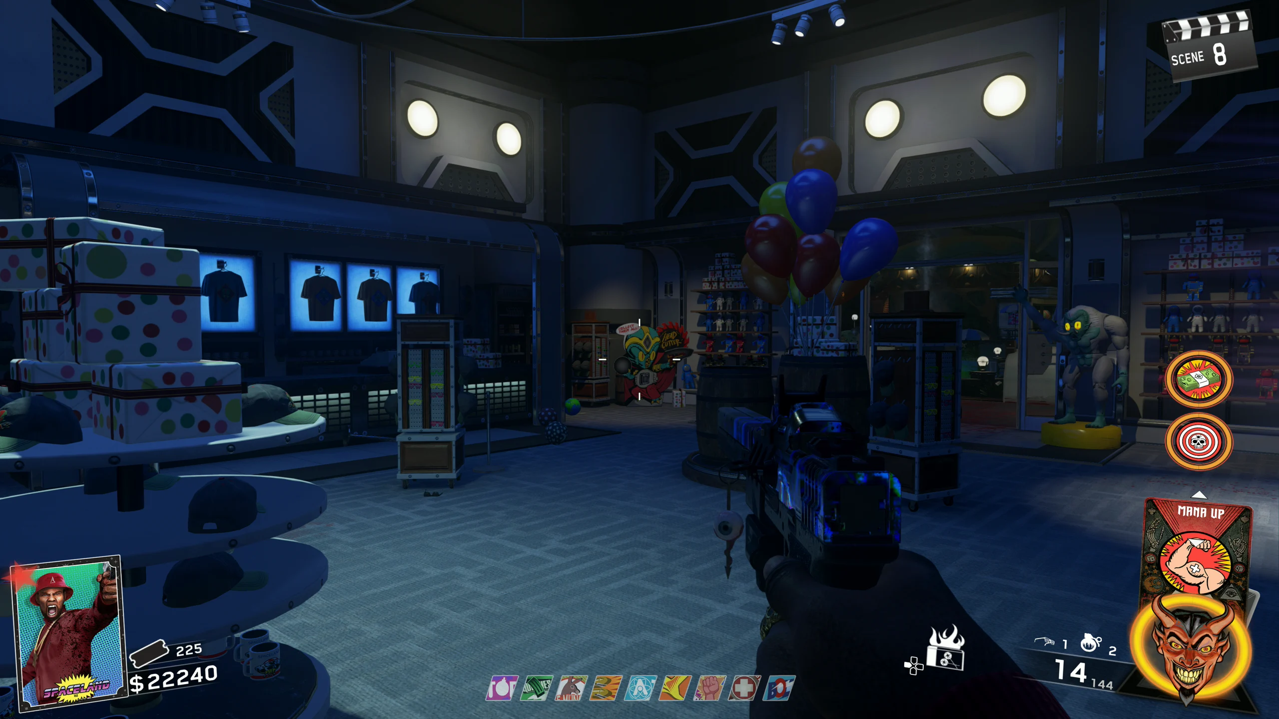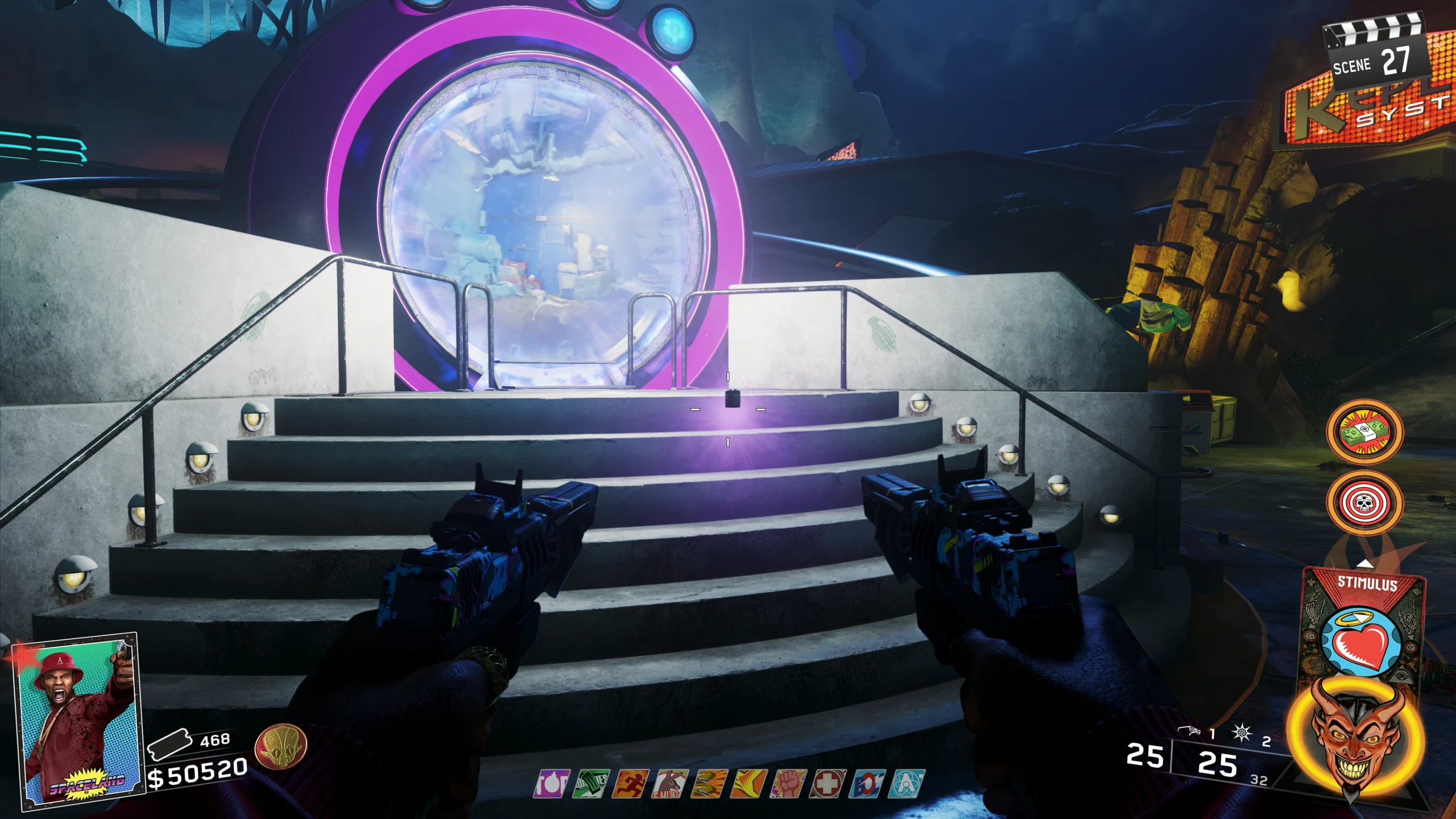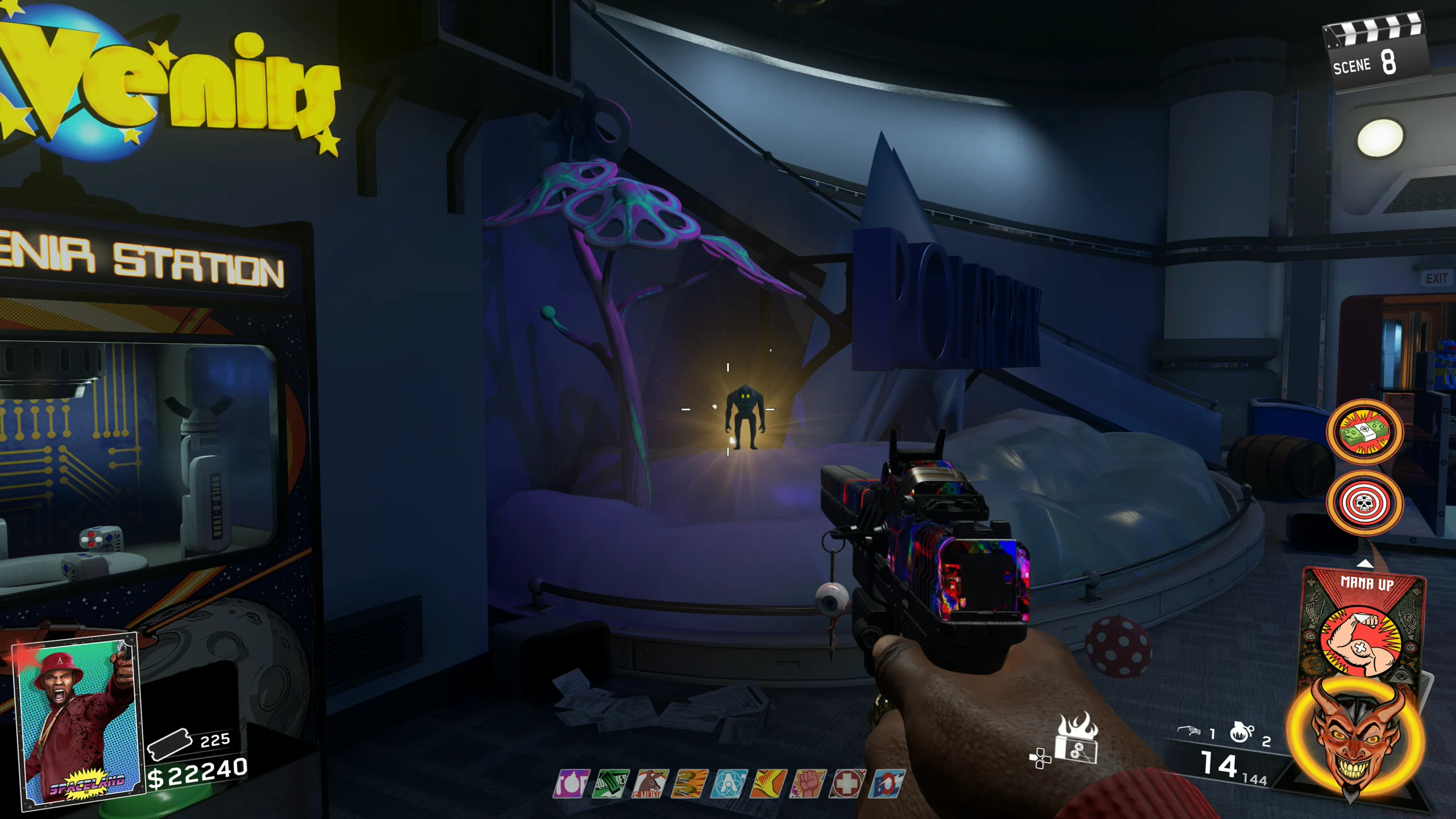 - Once all three rounds are completed, you will be teleported back to the Astrocade, with all perks permanently (except Up & Atoms in Solo).